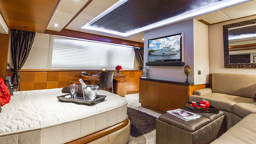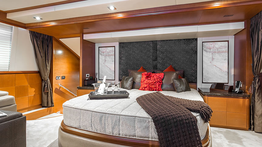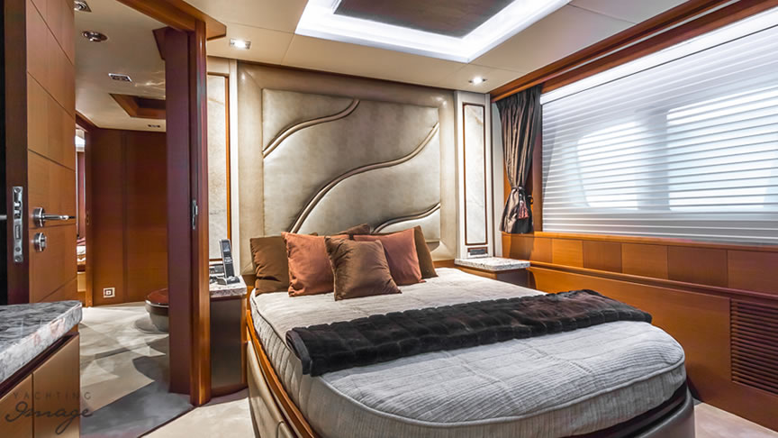 105 Azimut Mega Yacht Babieca's interior layout sleeps up to 10 guests in 5 rooms, including a master suite, 2 VIP staterooms, 2 double cabins and 2 twin cabins. She is also capable of carrying up to 4 crew on board to ensure a relaxed luxury yacht charter experience. Timeless styling, beautiful furnishings and sumptuous seating feature throughout to create an elegant and comfortable atmosphere. Babieca Yacht Charters also include snorkeling gear, water toys and a jetski. Babieca's impressive leisure and entertainment facilities make her the ideal charter yacht for socializing and entertaining with family and friends.