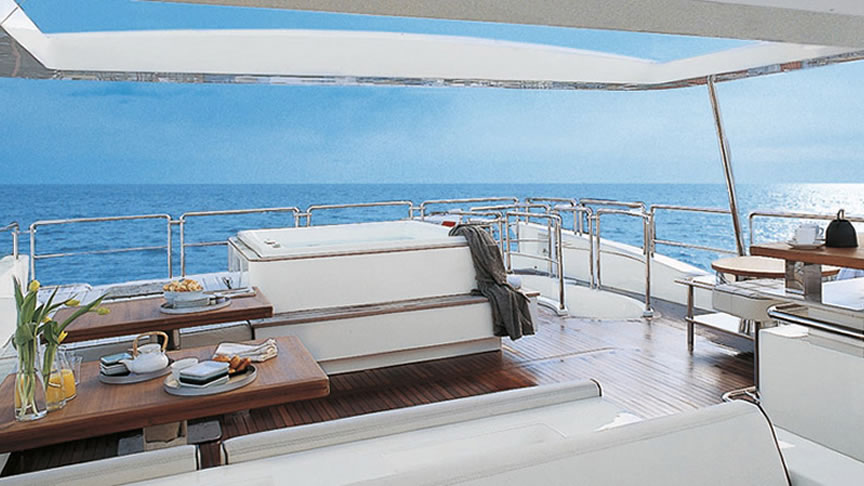 This incredible 116' yacht defines luxury. The allure of the white deck combined with the custom wood finish make this vessel truly elegant. Breathtaking views of sea and sky can be seen from every area of this expansive craft. Ample lounging space is allotted for conversing, relaxing, sunbathing, drinking, and dining both indoors and out, making it the perfect choice for entertaining your lucky guests. Each detail of this ship is adorned with class and comfort. From the outdoor bar to the master stateroom, you will feel at home. Beautiful stairways give the ship a classic look and make it easier to get from level to level.