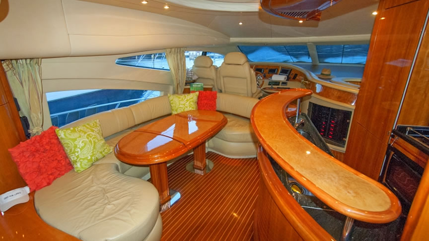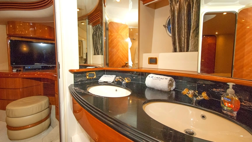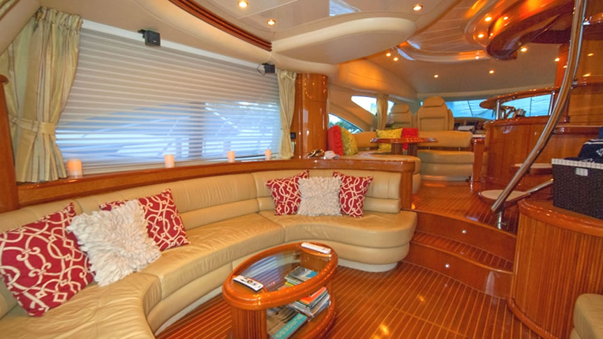 70 foot Azimut Italian Motor Yacht; her model name is 68 plus or 68 flybridge. She is the big sister to the Azimut sport model, the 68S. Although she is very much a yacht with her four bedrooms and four bathrooms, she still has the horsepower to keep up with her sporty sister. Her elegant accommodations and amazing use of space make her an ideal day charter yacht and even more a perfect term / or multi day charter yacht. She embodies the pure definition of the yachting experience and once you step foot on her teak decks you feel you are on an Italian work of art. Michelangelo would be proud! No matter where we are cruising, we encounter people asking questions and taking pictures of what is an exceptional yacht with an exceptional energy... and a Zest For Life.