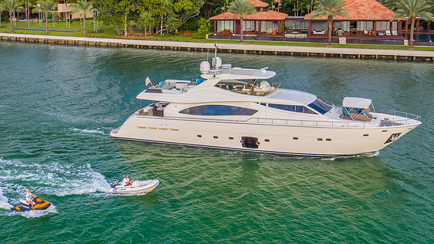 88 Ferretti combines sportiness & elegance with its exclusive interior layout, it proves to be an elegant loft designed to assure charter guests entertainment and relaxation. Ferretti 88 is a perfect blend of style and privacy. Ferretti 88 Flybridge Yacht is veritable terrace overlooking the ocean, where the color blue, the light and the horizon create an ideal setting for some truly exclusive relaxation.